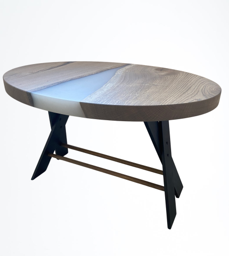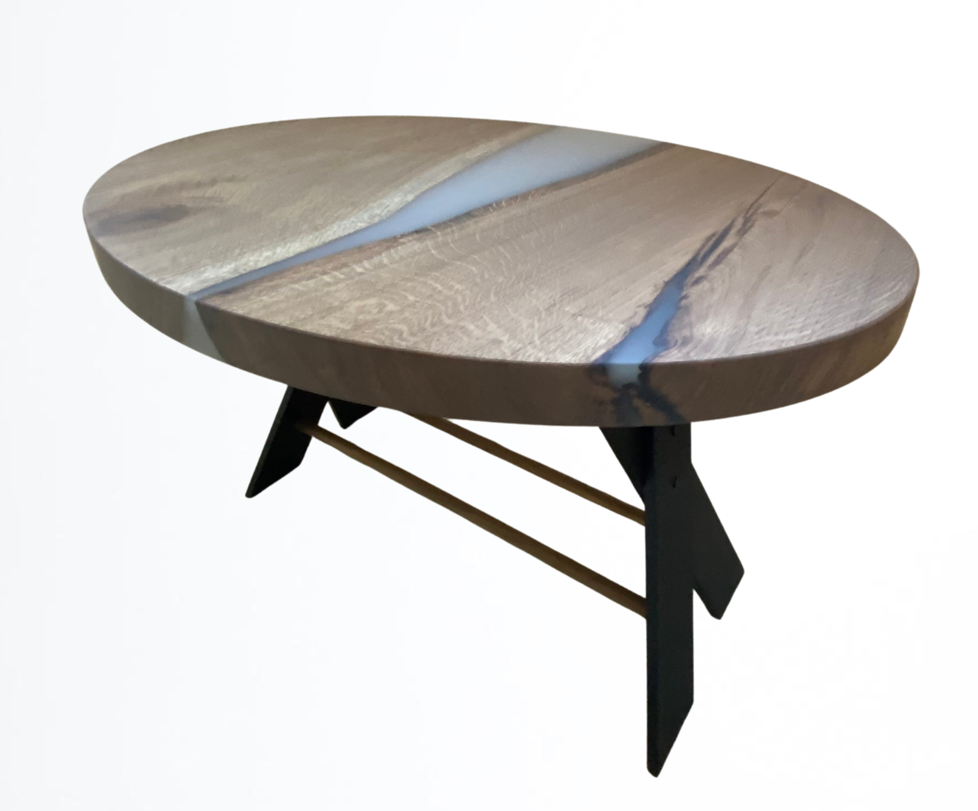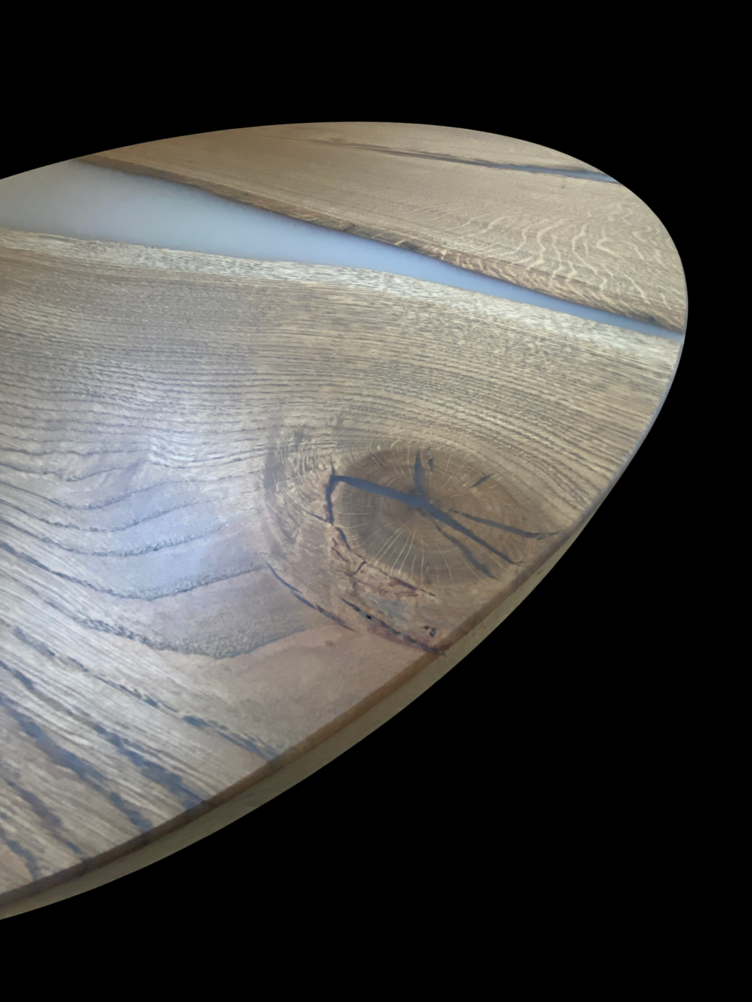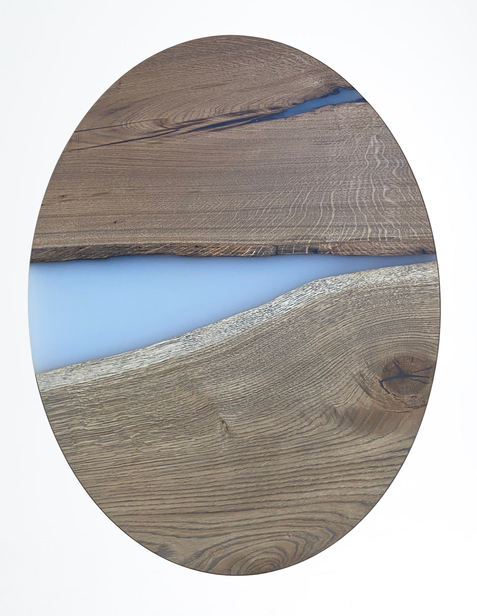Fabriquée à partir d'un mélange de chêne et de résine époxy, cette table basse s'intègre harmonieusement dans votre intérieur. L'ajout de la résine époxy blanche apporte un design contemporain et met en valeur le veinage unique du chêne. Sa forme ovale apporte la douceur et favorise une circulation fluide dans l’espace.