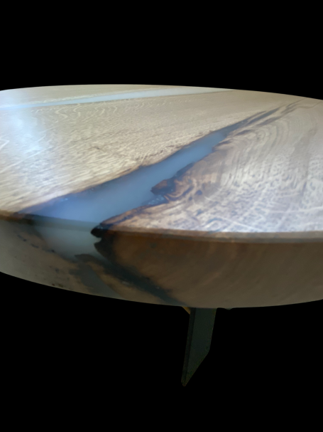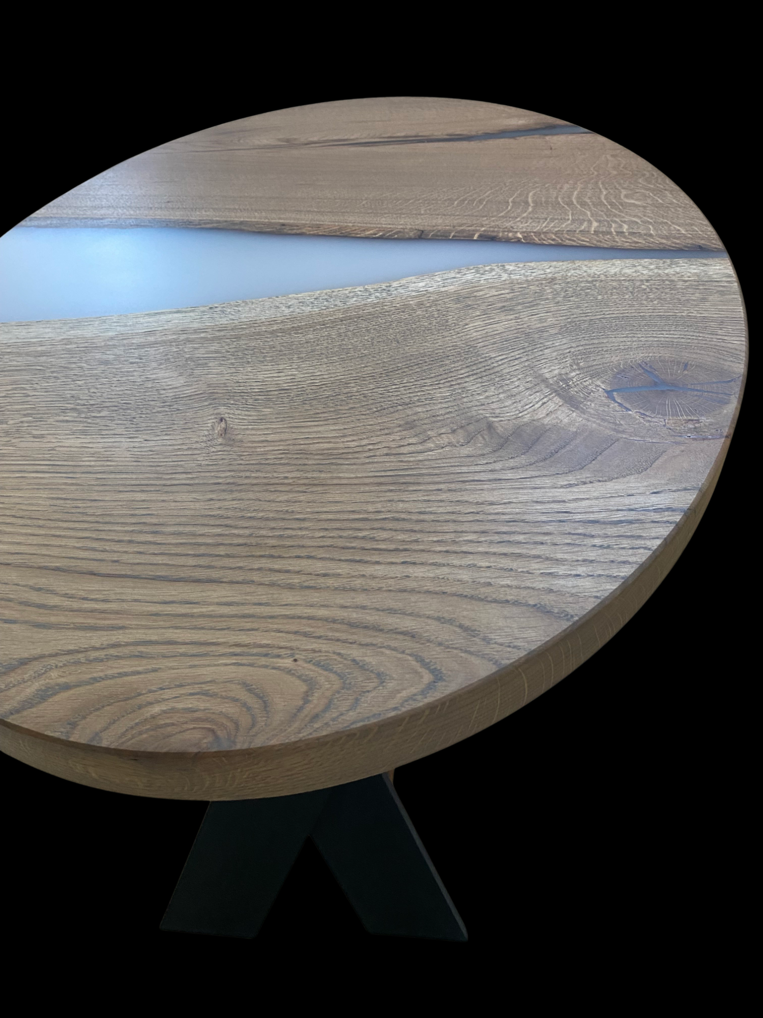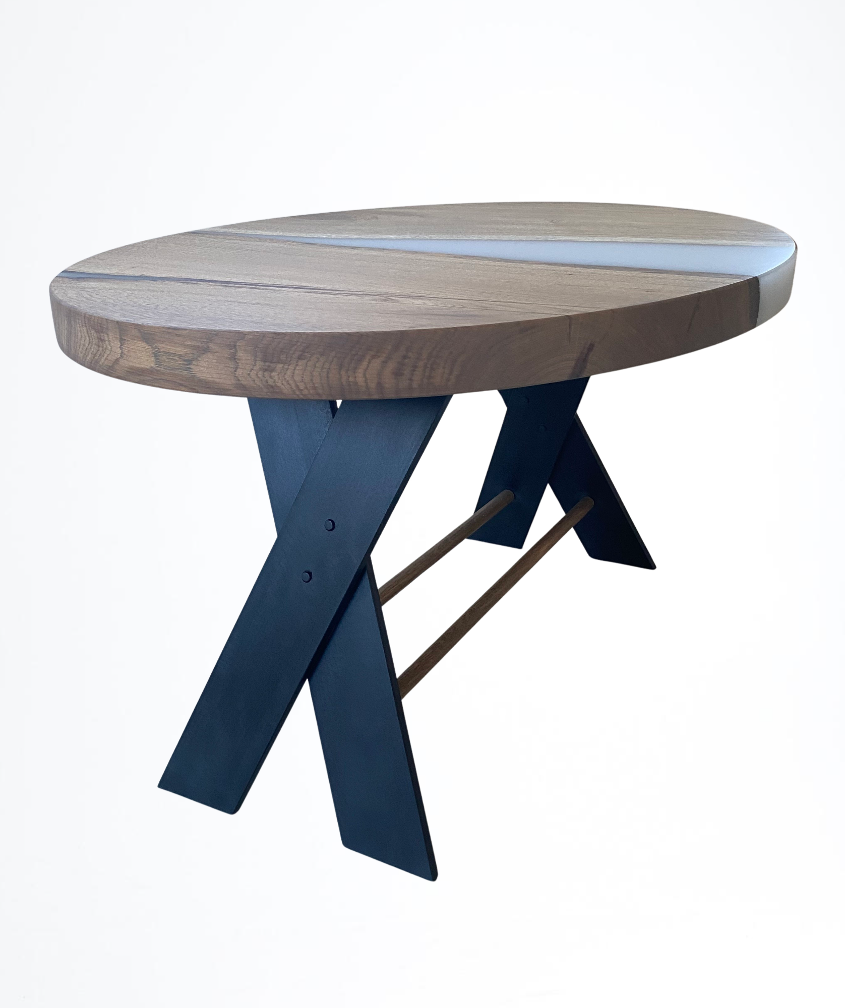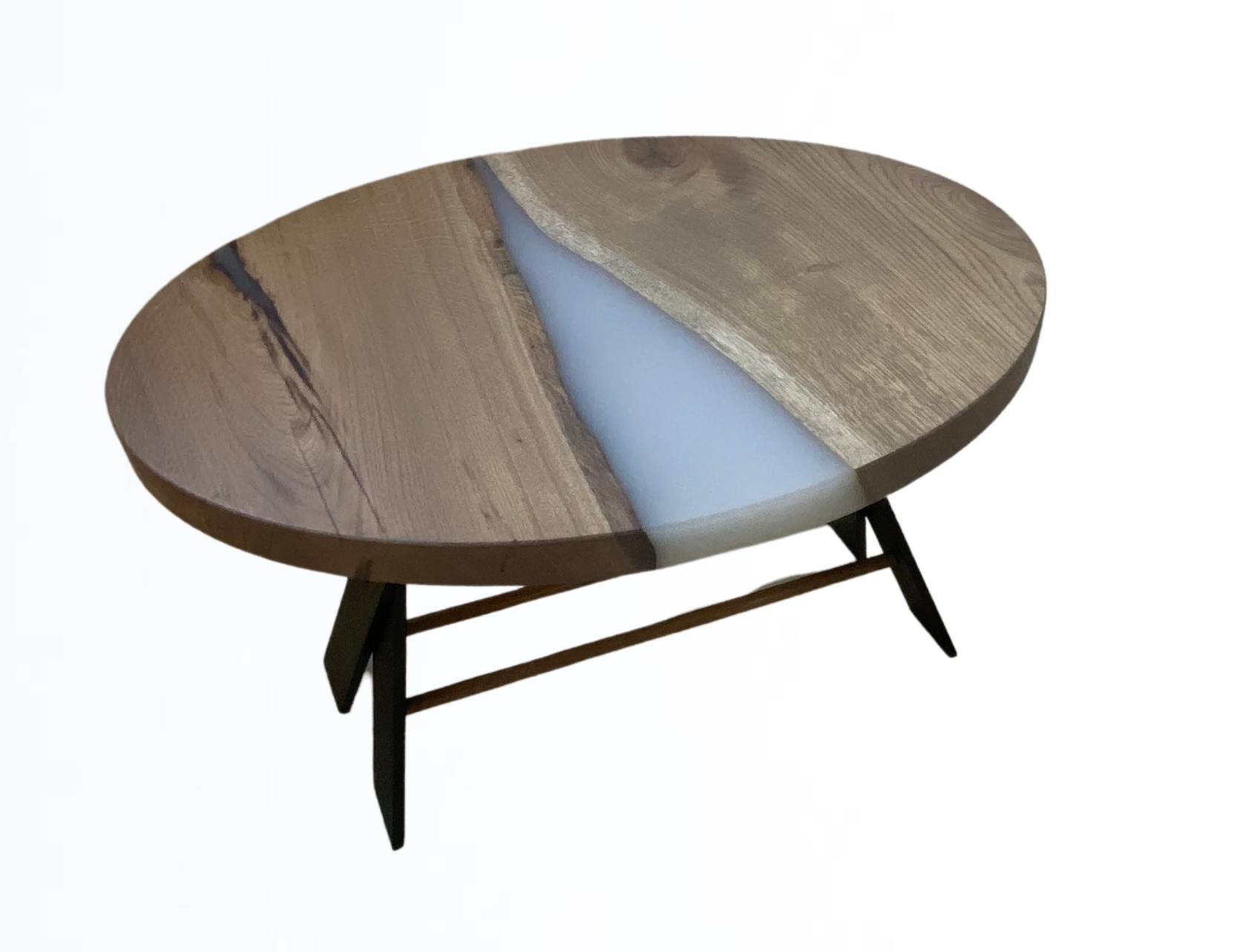 Fabriquée à partir d'un mélange de chêne et de résine époxy, cette table basse s'intègre harmonieusement dans votre intérieur. L'ajout de la résine époxy blanche apporte un design contemporain et met en valeur le veinage unique du chêne. Sa forme ovale apporte la douceur et favorise une circulation fluide dans l’espace.