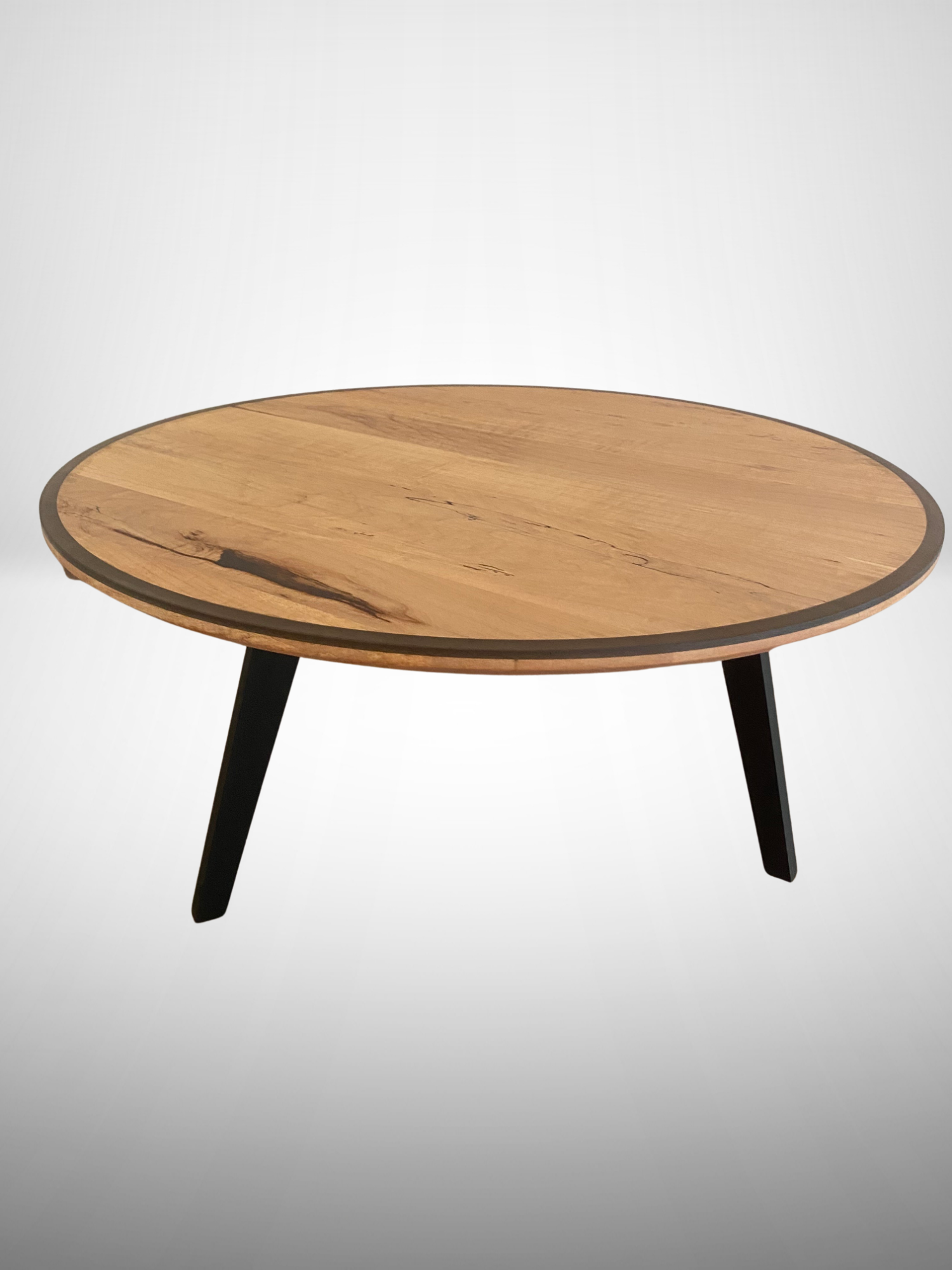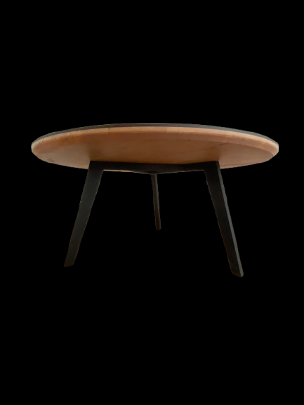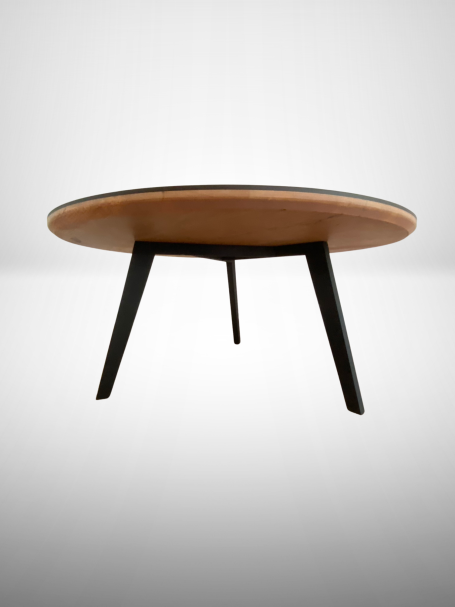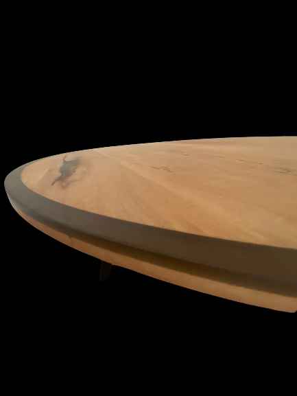 Cette table basse se fait remarquer par la teinte claire de l'érable contrasté avec un bord en époxy noir transparent.