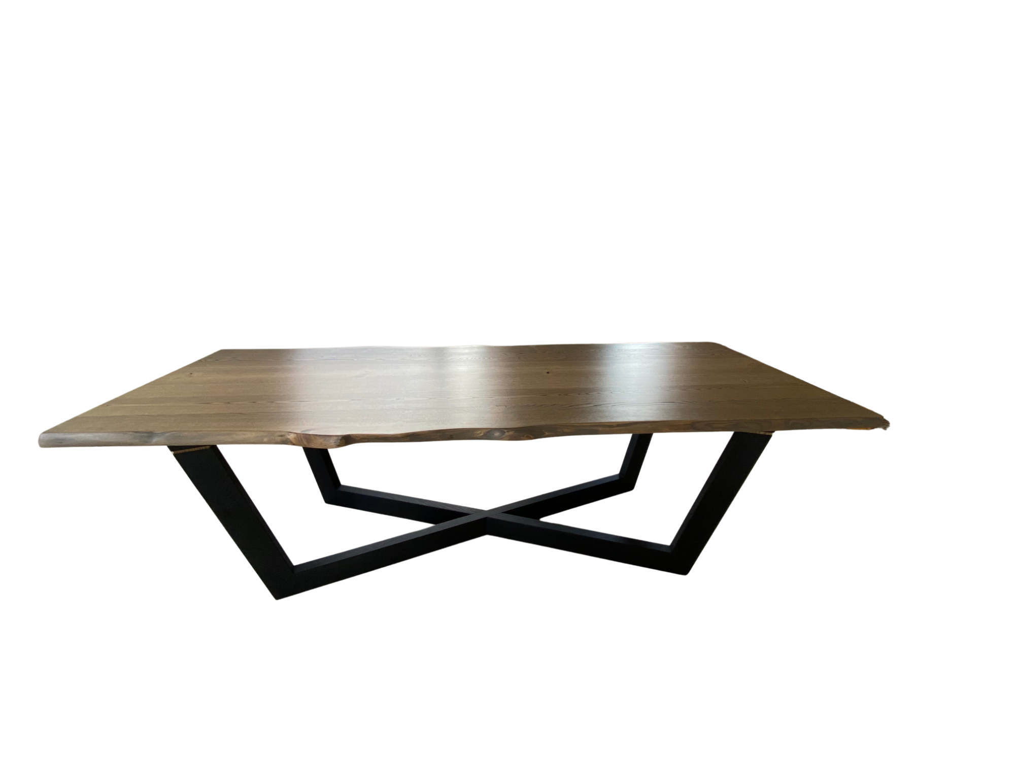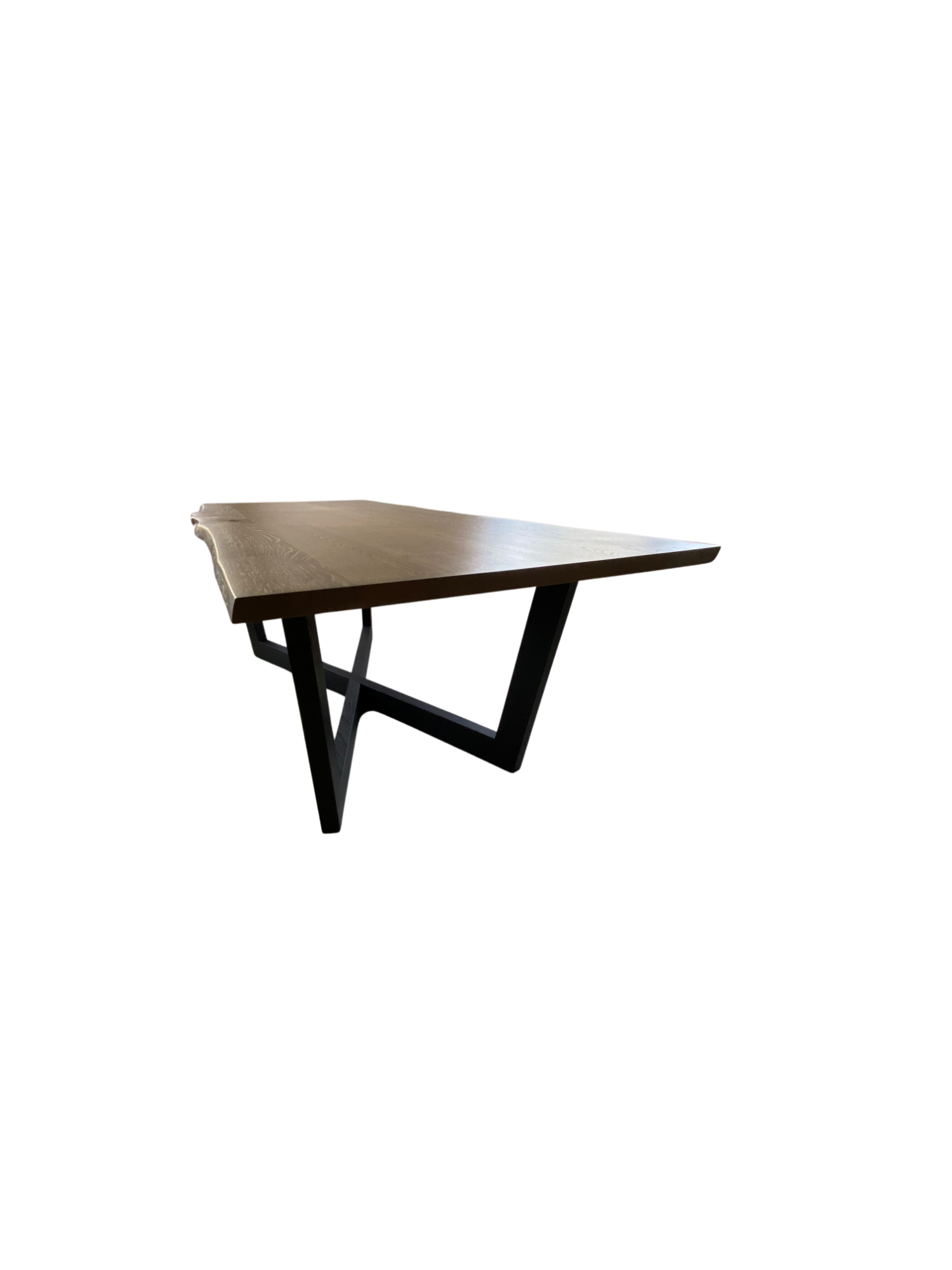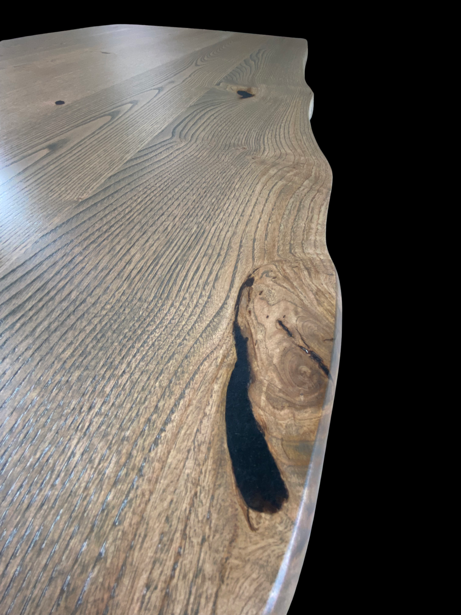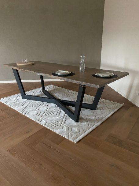 Cette table à manger en châtaignier s’intègre parfaitement dans un intérieur moderne. Avec son bord live edge et son veinage intéressant, elle conserve toute l’authenticité du bois. Les nuances de gris et de noir se marient harmonieusement, créant un ambiance chaleureuse et accueillante pour les repas en famille ou entre amis.
