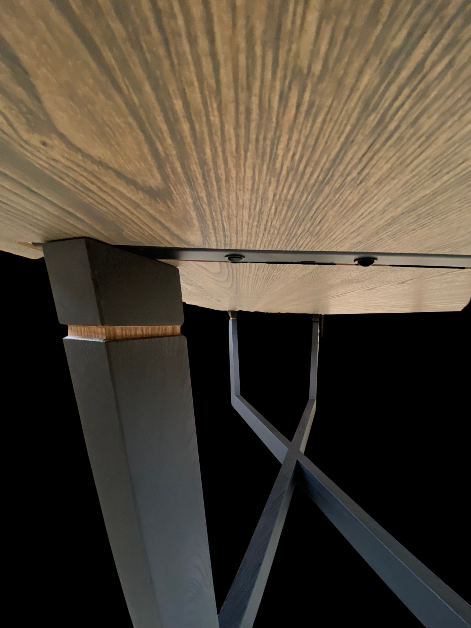 Les pieds en bois teinté noir ajoutent la modernité et une élégance indéniable à la pièce, tout en garantissant la stabilité et la solidité de la table. Grâce à ce choix de matériaux et à son design réfléchi, cette table est non seulement fonctionnelle, mais elle devient également un point focal dans votre salle à manger.