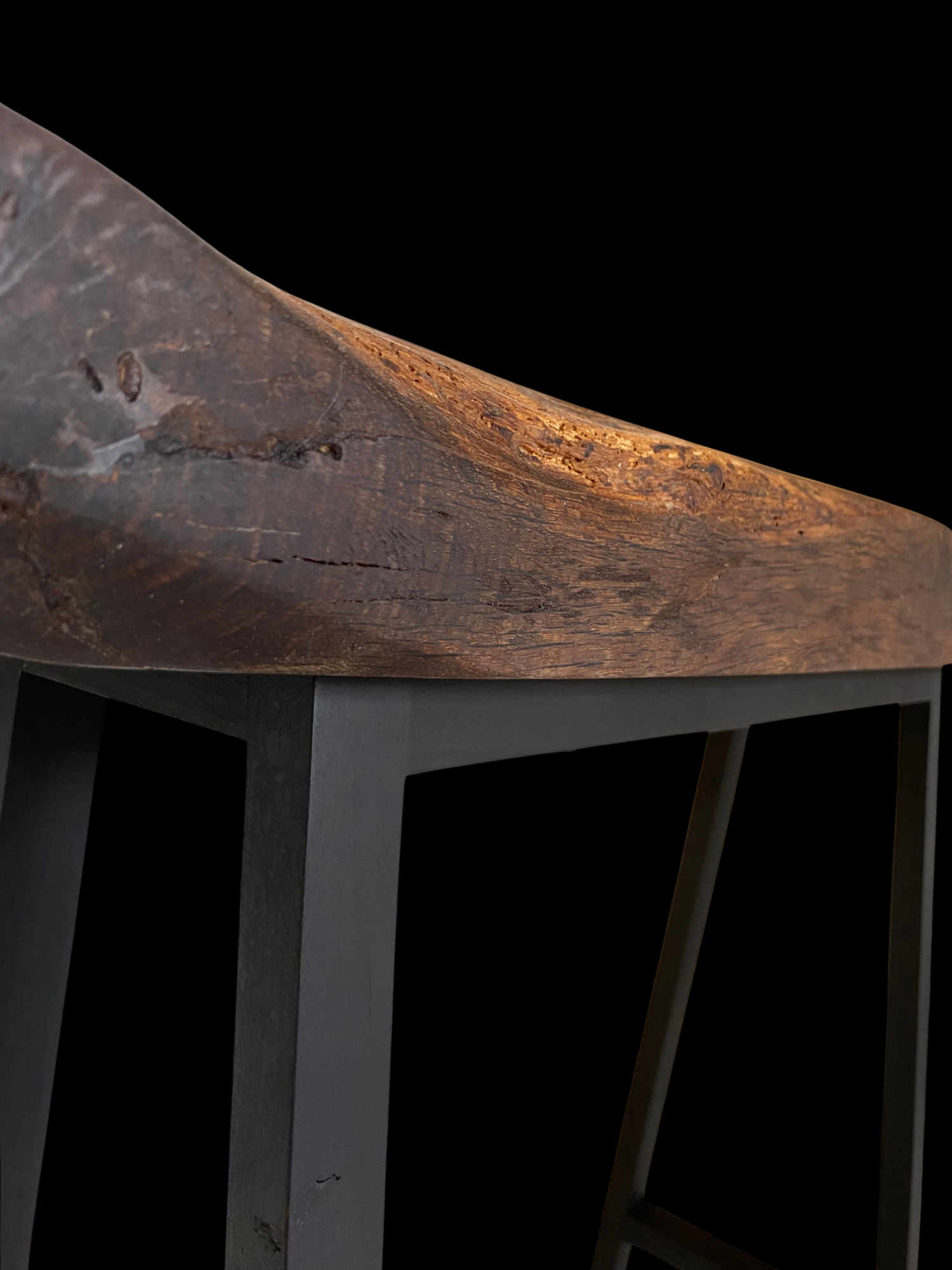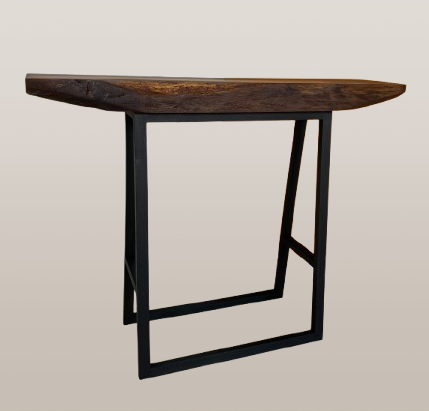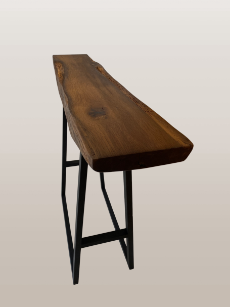 La base de la console est fabriquée sur mesure en bois teinté noir. Avec un écartement de seulement 27 cm dans la profondeur, ce meuble prend peu de place et offre une fonctionnalité indiscutable, idéale pour poser vos clés, décorations ou petites plantes.