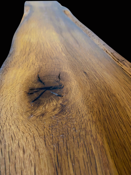 Fabriquée à partir de bois noble typique d'Isère, cette pièce est unique et apporte une atmosphère accueillante. La beauté naturelle du vieux chêne n'est pas masquée, mais plutôt mise en valeur par un traitement de surface quasi invisible .